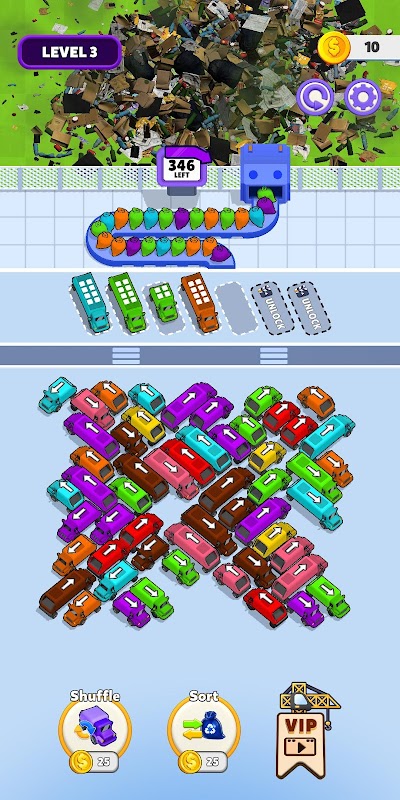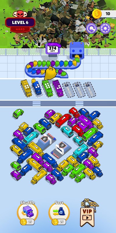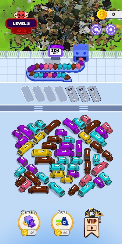The "Sort" skill sorts the garbage on the screen into manageable chunks.