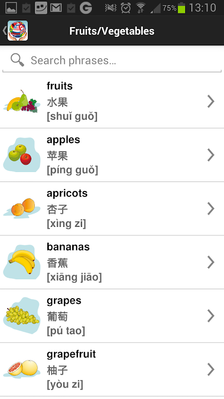 • Exercise based on the flashcard drill concept, so that you can learn words and phrases from your favorites list.
