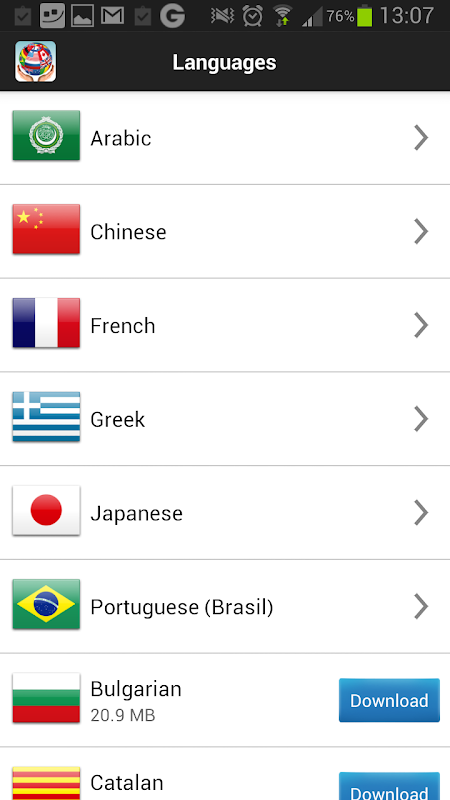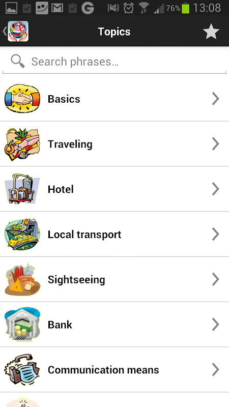 Advanced versions of the phrasebooks, with more than 2,200 illustrated words and phrases, are available from directly within the app. You also can purchase a set containing all 33 target languages. This option will save you money if you need more than one target language. An advanced version of “Travel Interpreter” with all 33 languages and more than 2,200 illustrated words and phrases is also available on Google Play.