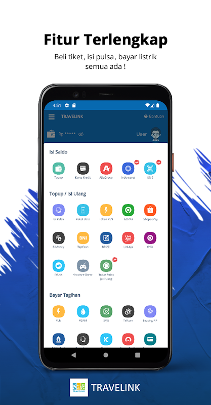 - Pay PPOB Bills (Monthly PLN, PLN Token, TELKOM Group, PGN, BPJS Health, PDAM, Leasing, Postpaid Card, Game Voucher, Cable TV)