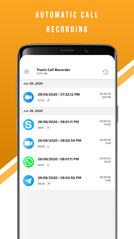 Travis Call Recorder lets you easily record Whatsapp, Skype, Zoom and Telegram calls for a wide range of Android devices and OS versions. You can store your conversation and replay it anytime.