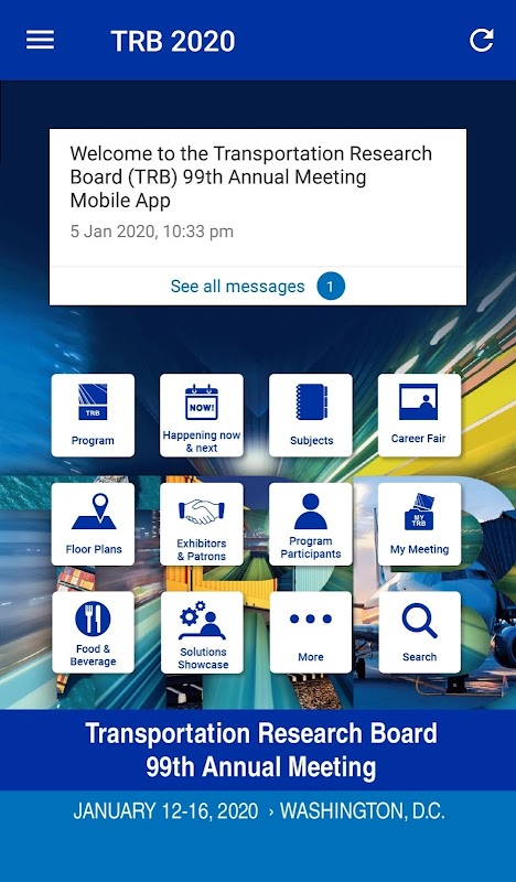 The mobile app for the TRB 2020 Annual Meeting, Jan 11-16, 2020, Washington DC