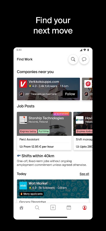 Employers can now switch to personal mode to browse the feed, network, apply for jobs - and show off their Treamer management experience with in-app reviews and work history.