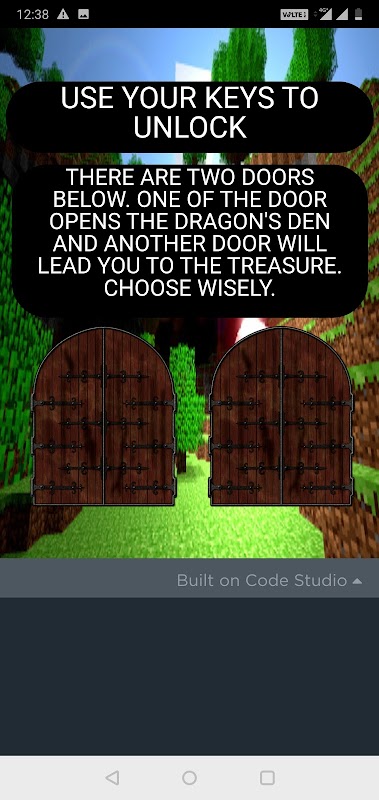 A door will unlock the Treasure. Beware of the Dragon that can be behind any doors. Good luck playing!