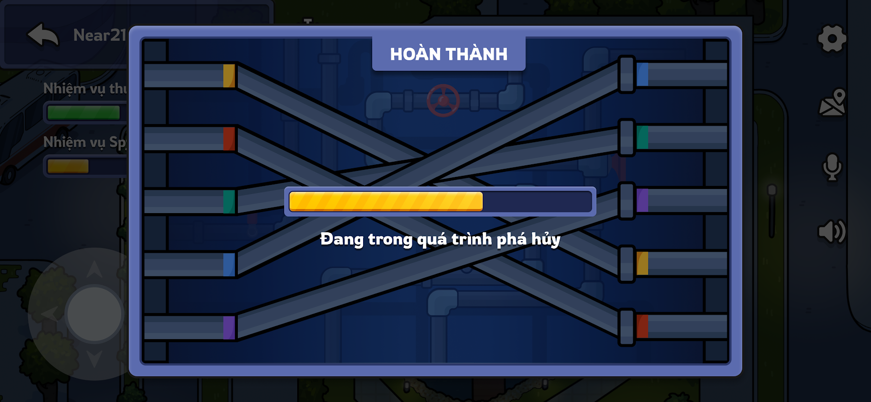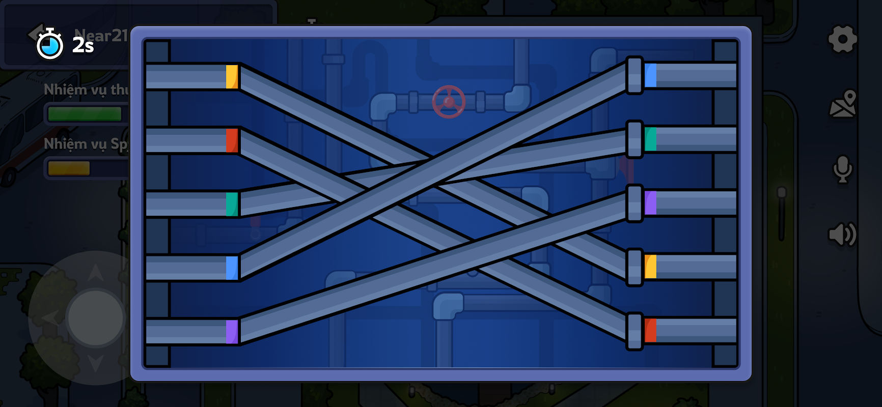 • Di chuyển quanh Hola và tìm các icon nhiệm vụ chung theo ba loại: Xây dựng, Nối dây và Giải đố.