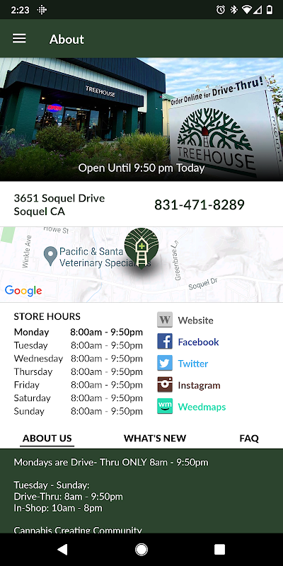 Treehouse is a cannabis dispensary operating in accordance with Santa Cruz County local ordinances, CA Proposition 215, CA SB420 and all applicable California State Cannabis Laws. All age 18+ with a medical recommendation and 21+ with a valid photo ID are welcome! C10-0000105-LIC