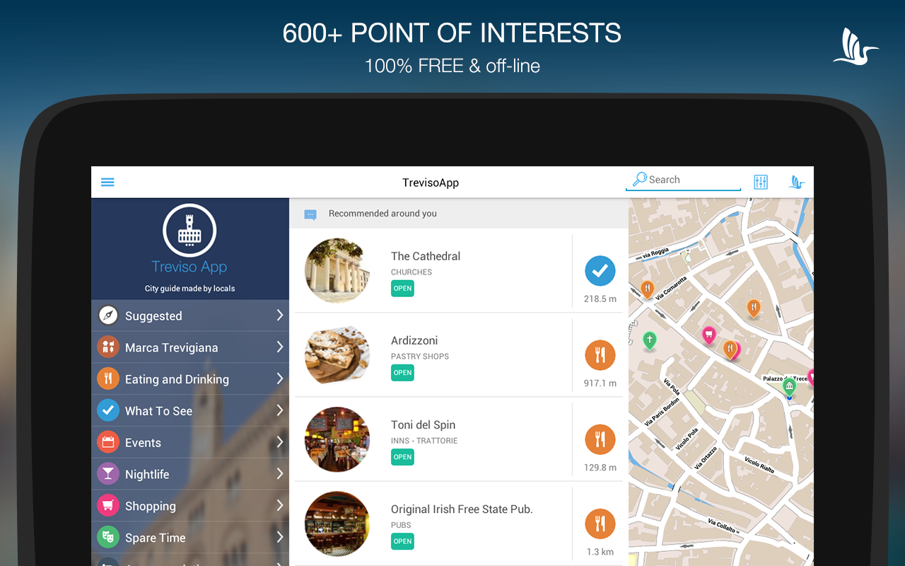 TrevisoApp is the mobile guide for Treviso managed by locals, free and offline.