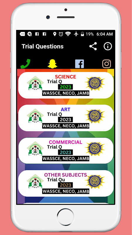 This App Contains WASSCE, NECO AND JAMB TRIAL QUESTIONS for 2023 Candidates to practice.. Below are the List of Subjects in the App.