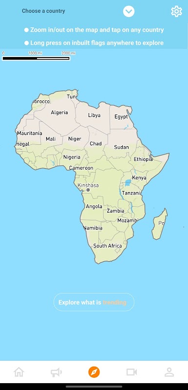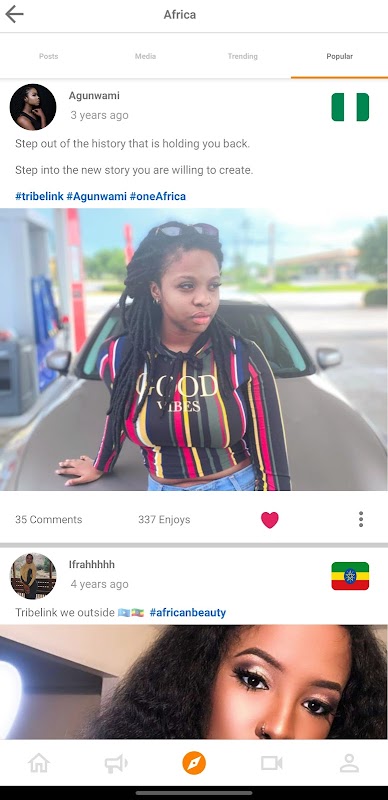 Discover - Explore the African Continent to find new users to add to your tribe, see what is trending in the many regions of Africa, or just see posts and pictures of other users in any African country of your choice you can enjoy all with an interactive African map discover page!