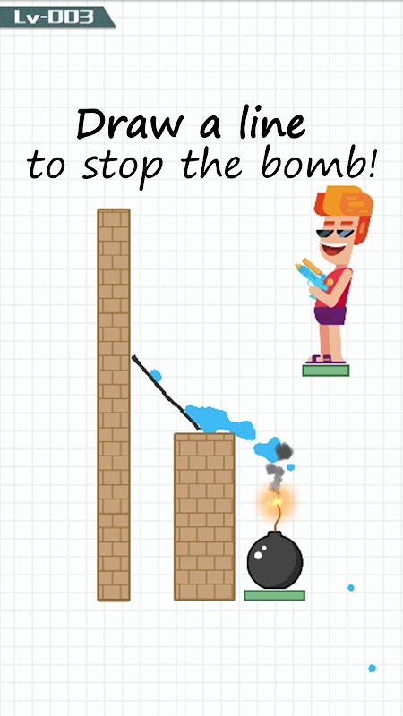 The rule's easy, just draw lines or shapes to let the water extinguish the bomb, you'll need your wisdom and imagination.