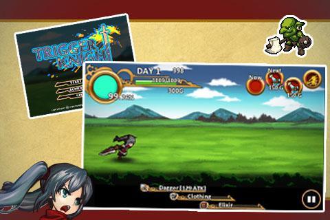 Guide the Knight to defeat as many enemies as she can before her health energy ends! Gather gold via combats, and direct her to stronger equipment, healing items, and divine deathblow techniques to defeat deadly dragons, in multiple rapid split-second decisions!