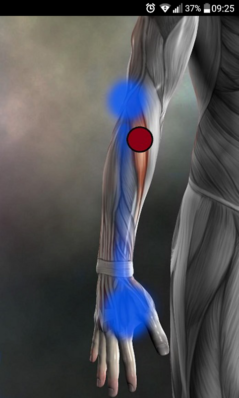 Приложение предоставляет информацию о триггерных точках по всему телу.