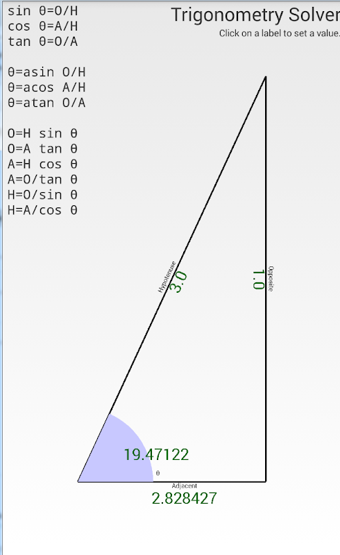 Shows the equations for solving a right triangle, and includes a solver as well. Requires no permissions.