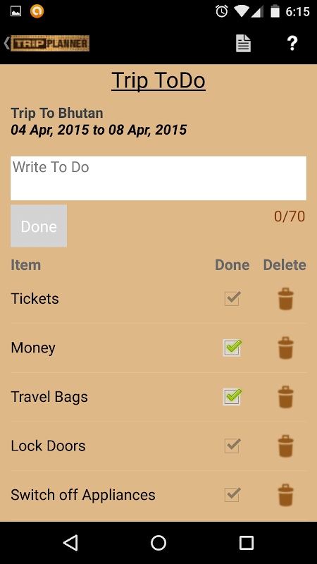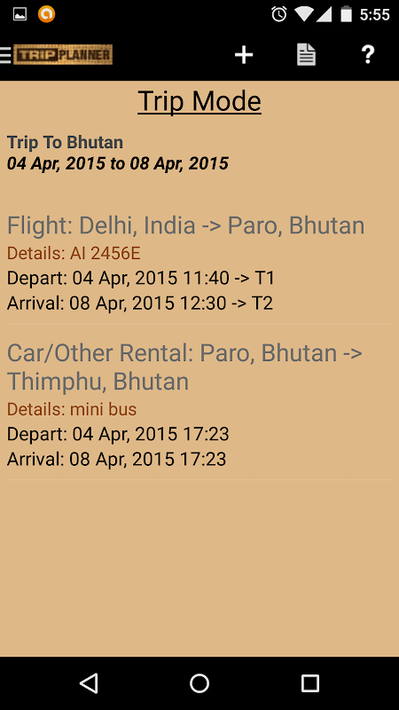 Trip Planner app allows users to plan their trips (personal or business). A one-stop shop for trip planning activities. Users can share the trip summary data via email, other sharing apps or upload it on Google Drive. Every aspect of a trip is covered in this app.