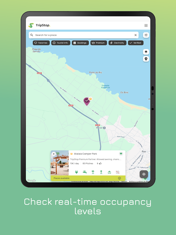 TripStop is the only 100% free app with information on more than 1,700 camper spots in Spain and Portugal.