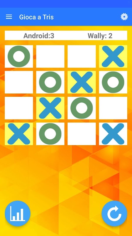 The aim of the game is to complete the grid by creating as many tris as possible. The game doesn't end at the first tris and this makes it even more exciting in the challenge against android or against a friend.