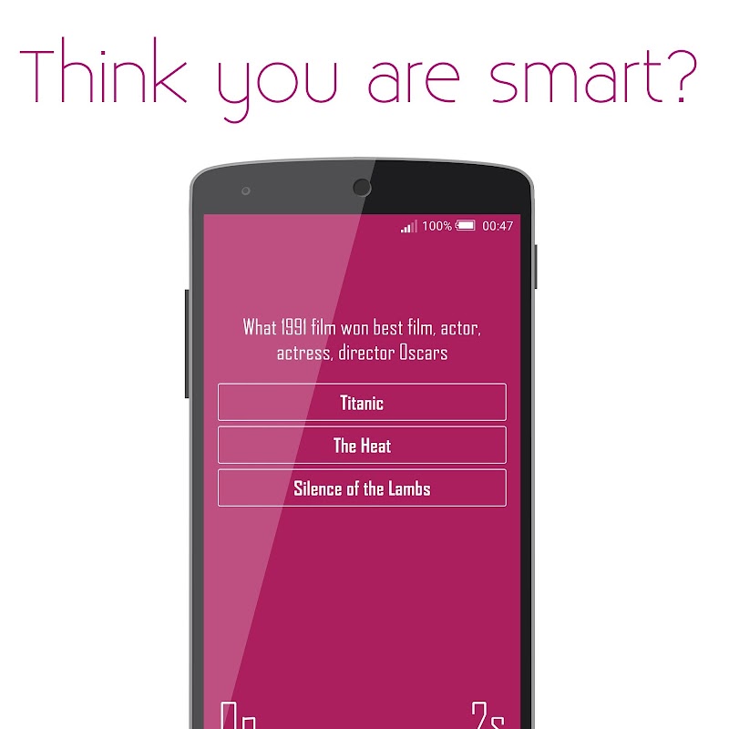 So you think you are so smart? Show us your brain power and your general knowledge. You are competing against other players from all around the world. Try to be the number one in Trivia Quiz. Try to answer to more hundreds of questions from various fields, such as: Science, Music, Movies, History, Entertainment, Writing, Geography, Art and General Trivia questions, etc.