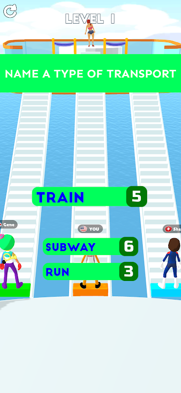 Compete with others to race all the way to the top by answering the question right and you move according to the number of characters in your answer.