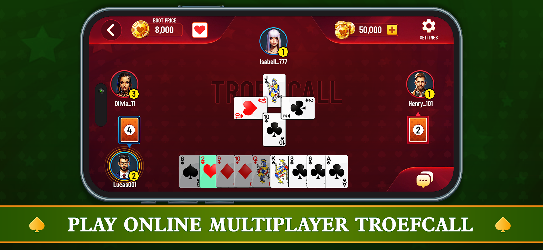 Play solo against smart AI or challenge your friends in real-time multiplayer. Choose your trump, master your strategy, and dominate the table. Whether you're a casual player or a competitive pro, TroefCall offers deep gameplay, cultural flavor, and exciting rewards.