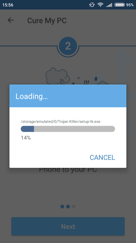 We recommend to use the Trojan Scanner [Anroid Edition] when your phone needs to be scanned and cleaned. In addition, it will be useful in case you need to cure a locked computer - just select the Cure My PC item in the menu and follow the instructions.