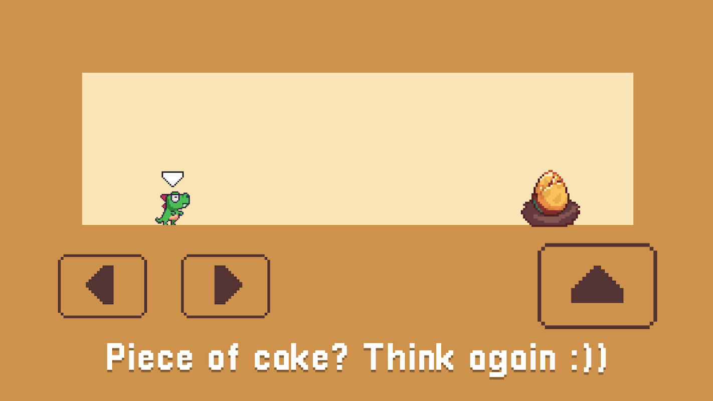 Welcome to "Troll Run Dino: Troll Again", where each designed level brings out the mischievous dinosaur in you! Your mission: Get to the egg at the end of each level to win. Sounds easy? Nuh-uh! Brace yourself for a maze of ridiculously fun and troll challenges that will keep you laughing - or facepalming - all the way to the finish. Prepare for some delightful yet annoying surprises in level - like hidden holes that pop up unexpectedly, spikes that start moving out of the blue, and ceilings that seem to drop when you least expect them. Each level brings its own unique twist of fun. Just remember, if you make a mistake, you’ll need to start over. So, stay on your toes, take things as they come, and most importantly, keep smiling! Let's see how many lives it will take you!