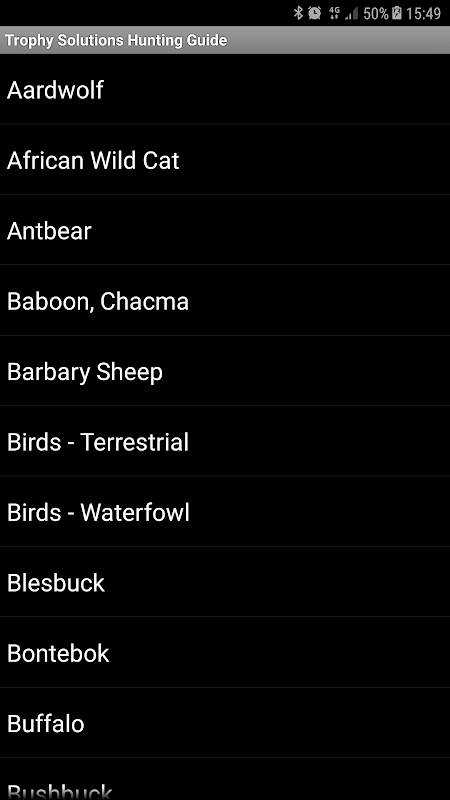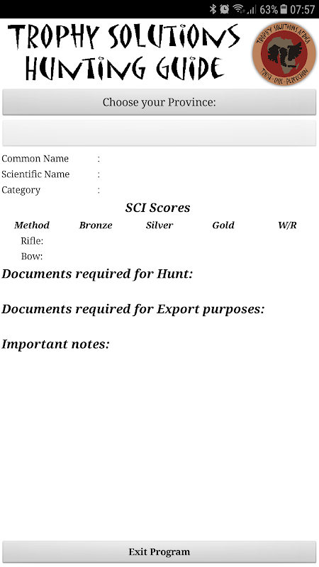 This Application has been developed by Trophy Solutions Africa (TSA), primarily as a tool to help Hunting Outfitters, Professional Hunters and Hunting Clients, to be aware of what documentation is legally required prior to hunting an animal as well as the documentation required for the export application of such animal's parts, through government.