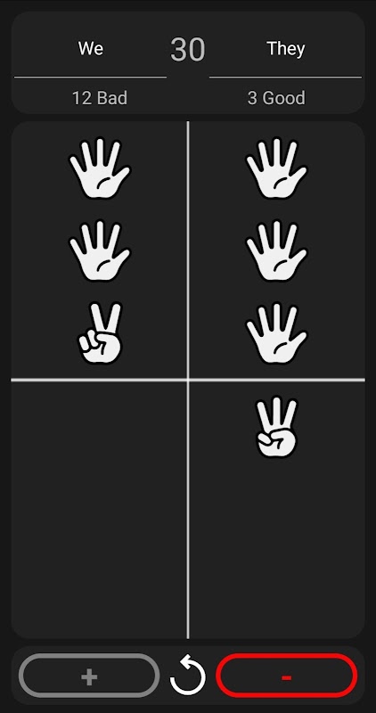Customization: Configure the points counter according to your preferences. Choose between the "Matches", "Lines" or "Fingers" system to keep track of your trick games.