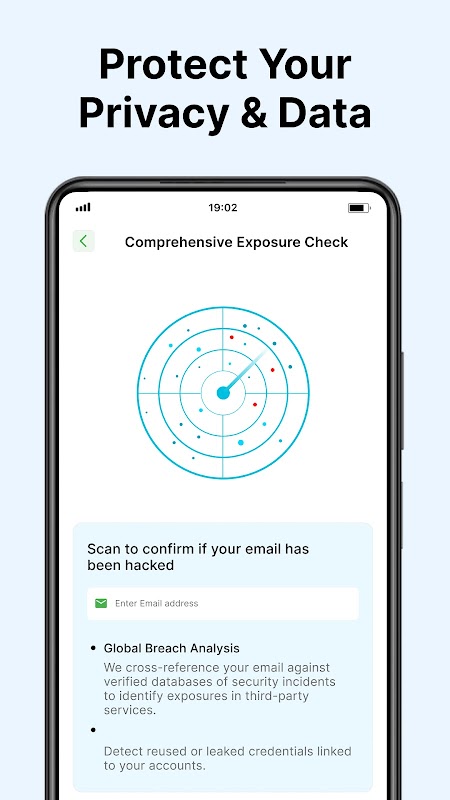 Tap Scan Now to check for threats, email data leaks, wifi scans, bluetooth scan and much more.