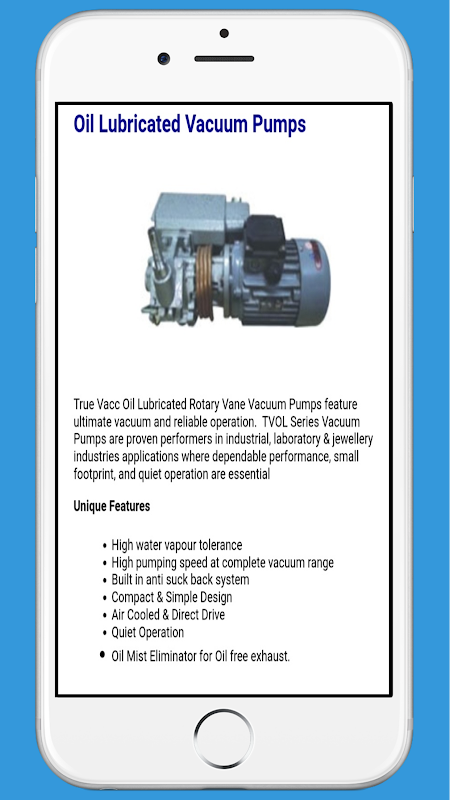 True Vacc High Vacuum Pumps TVBD/TVBS Series consist of main causing with a rotor fitted eccentrically in it. The vanes are fitted in the slots of rotor on opposite sides with springs between During rotation, the vans move in and out of the slots and sweeps the air space two times in a revolution.