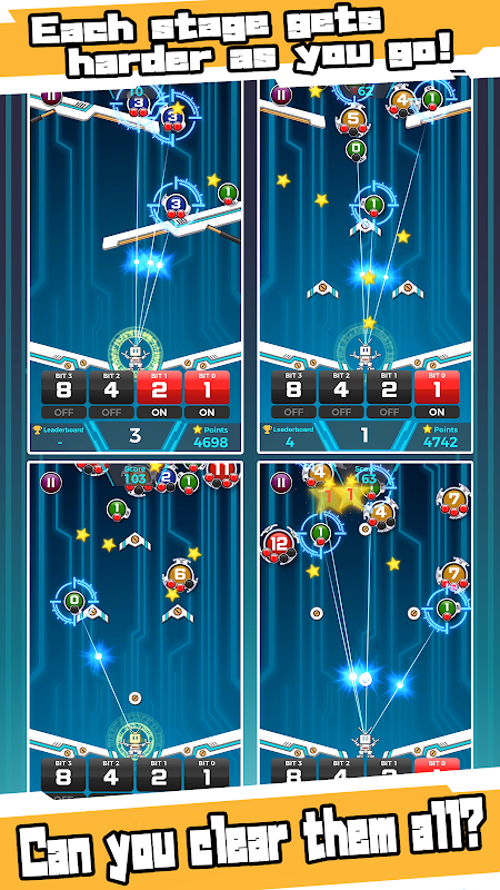 4 bits will let you create 16 types of numbers to knock out the Bit Balls.