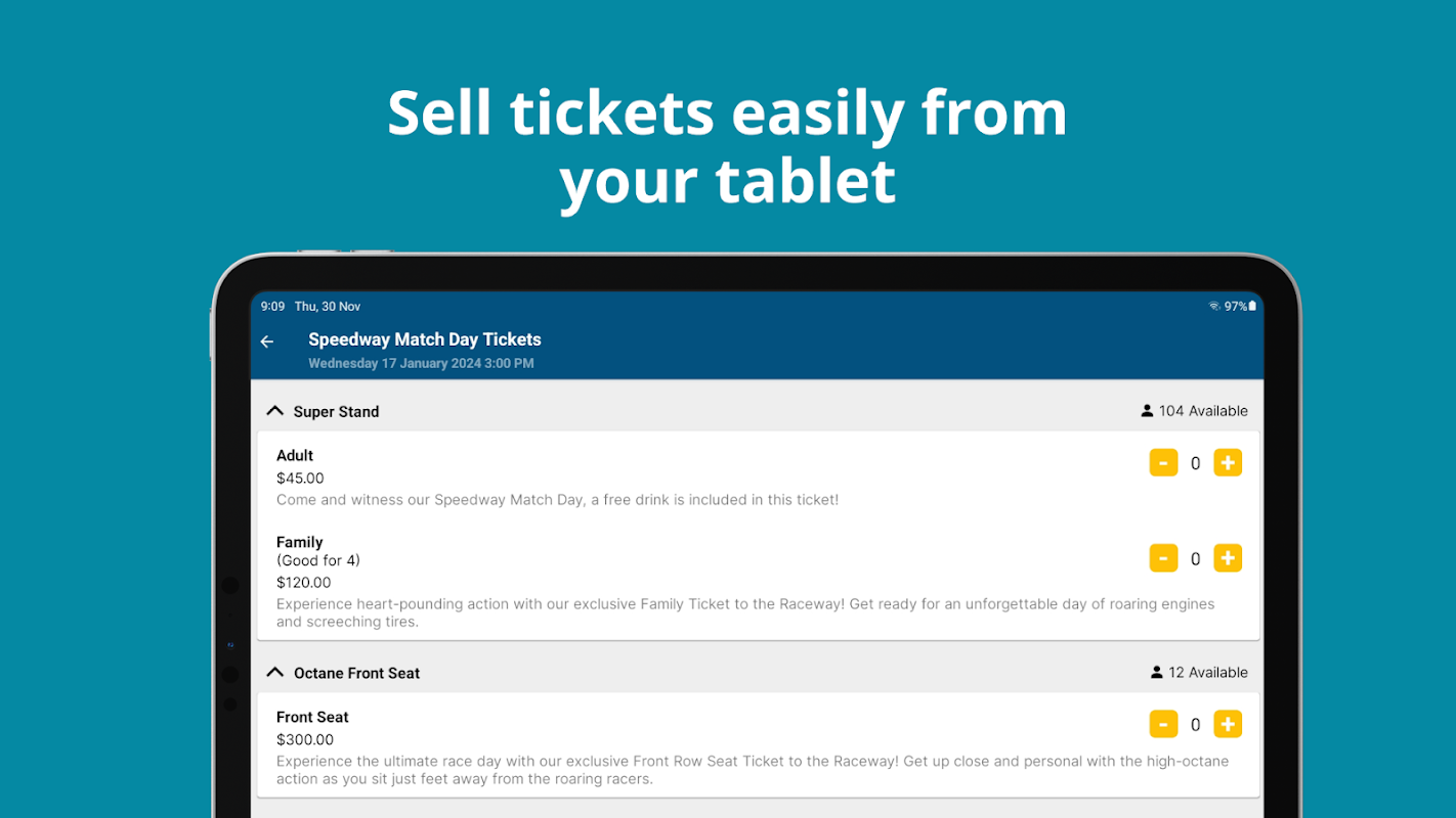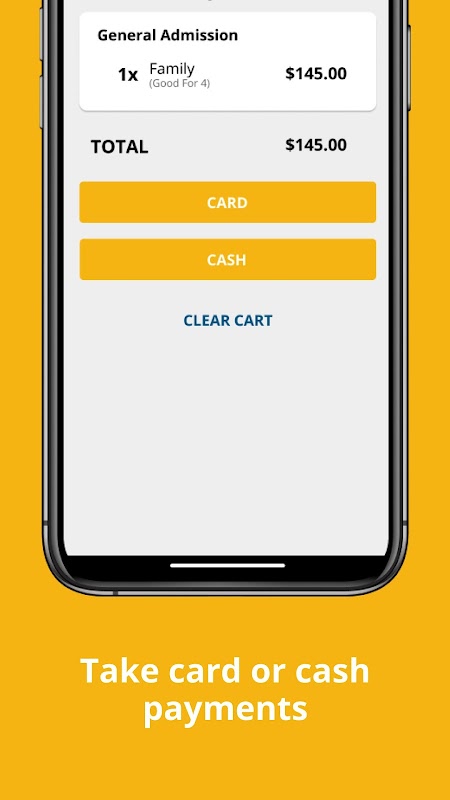 • Sell tickets, merchandise, food, and drinks directly from your Android device.