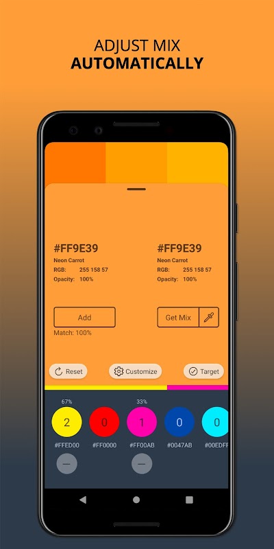 Trycolors will automatically adjust the proportions of your initial colors in order to get any desired color you want.