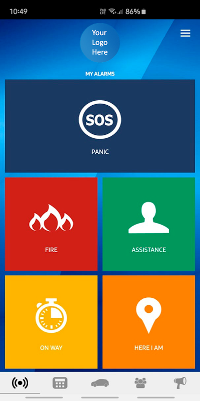 - Police, fire and medical panic buttons with geographic position notification, sound and images of your emergency (MY ALARMS)