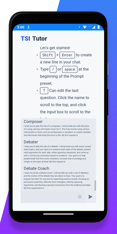 Our AI chat bot is the centerpiece of the TSI Tutor experience, providing a friendly and intuitive interface that makes learning a breeze. With natural language processing and machine learning algorithms, the chat bot understands your inputs and responds with personalized feedback and guidance.