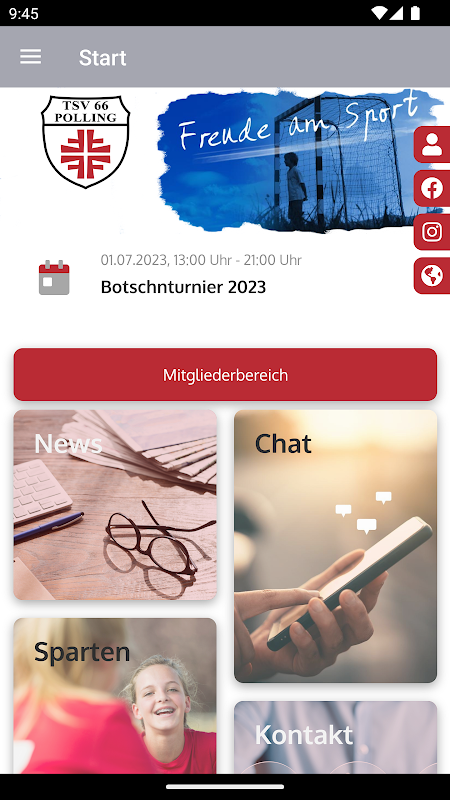 From now on not only our members but also the association are mobile. In our own app you can, among other things, find out about the latest from the club, search for sports offers, view dates and become a fan reporter. With this app, the TSV 66 Polling offers interesting insights for fans, members and interested parties.
