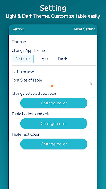 TSV file viewer app theme are easy to customize, they have three different themes I.e. Light, Dark and System Default theme. In System default theme tsv viewer app will inherit phone default theme.
