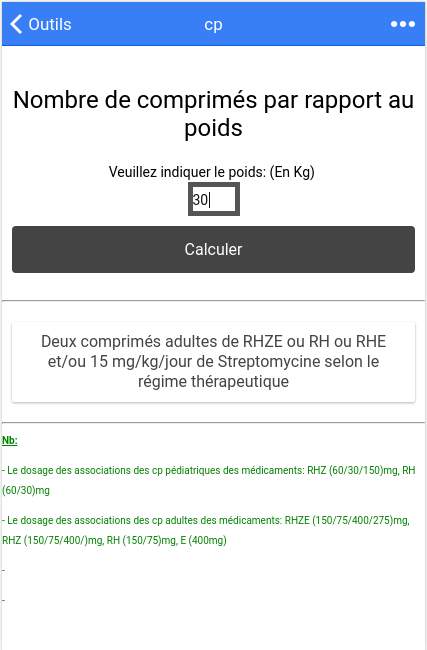 Add to that some tools may facilter a patient's care, such as: calculating the number of tablets to be taken according to weight, schedule contrôles..etc