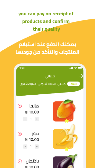 Your application to shop and purchase a good quality of fresh fruit & Vegetables, besides ensuring cleanliness and fast-delivery to doorstep.