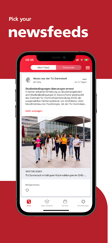 Whether you have just started your studies or are already doing your Master's degree – TUDa supports you in your everyday life as a student and on campus. The app bundles central features in one place and ensures that you stay informed, organised and stress-free throughout the semester.