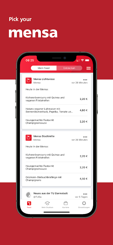 Mensa: Up-to-date menus at a glance – for all TU Darmstadt canteens.