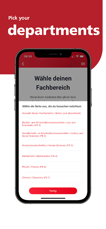 TUDa is the official app of TU Darmstadt and your digital companion during your studies and on campus. Whether it's your student ID, Moodle access, Mensa (canteen) plan or room search – with TUDa you have everything you need to know about your studies at your fingertips.
