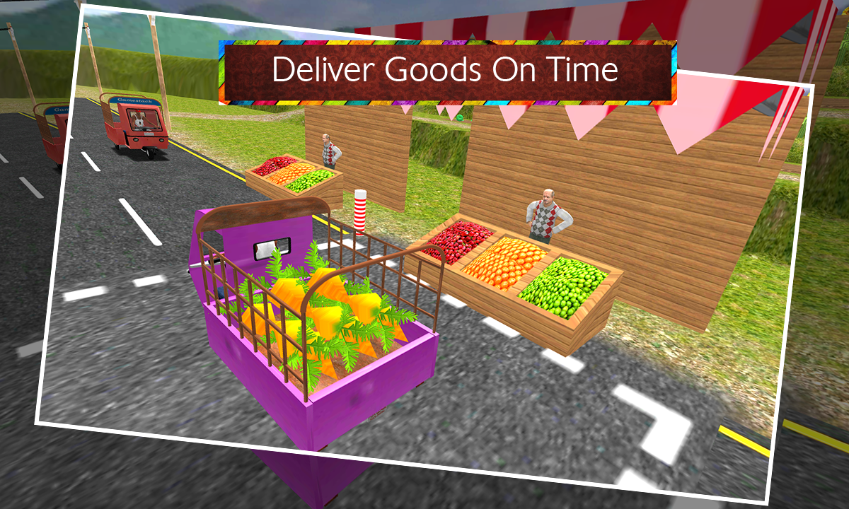 Game include both city and mountain area. go to the fields and collect vegetables fruits and other goods to supply them to shops in the market. environment of this game is beautiful and set in out side of the city and country side. drive your rickshaw from the starting position and find the targeted location where goods are ready to loaded on cargo, supply that goods to the market where need.