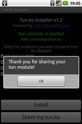 2. Click the Share my tun.ko button