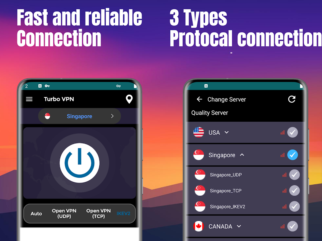 The latest feature enables the true "auto" mode. Our fast vpn app continues a lost connection from one server to another automatically. In that way, you don’t need to re-pick servers or lose time reconnecting. The Turbo super free vpn does it for you!