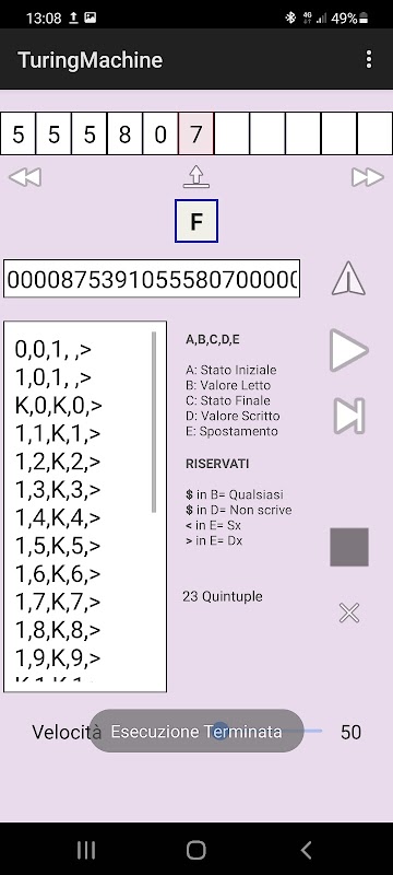 Turing Machine is a Quintuple Turing Machine simulator with which to practice to train the mind and / or to prepare for the competitions frequently organized for upper secondary schools.