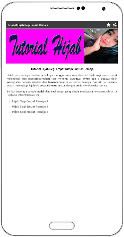 Jika anda memasang aplikasi sederhana dan gratis panduan atau tutorial hijab ini maka anda akan menemukan penjelasan sebagai berikut :