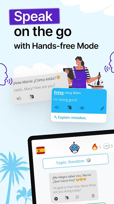 🙌 Hands-Free Mode: Practice your language skills on the go, whether you're cooking, jogging, or commuting.