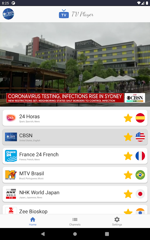 This App doesn't provide any TV sources. You need to add a playlist from your IPTV provider to watch live TV channels.