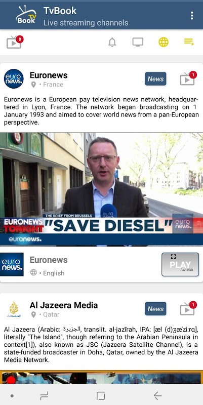 TvBook can be used to have all the world channel in your pocket (Channels list auto update).