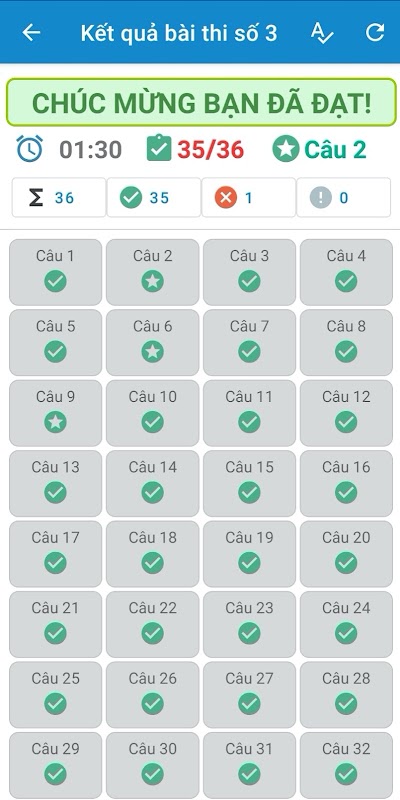 • Danh sách các câu hỏi đã làm sai giúp nhanh chóng ôn lại phần lý thuyết.